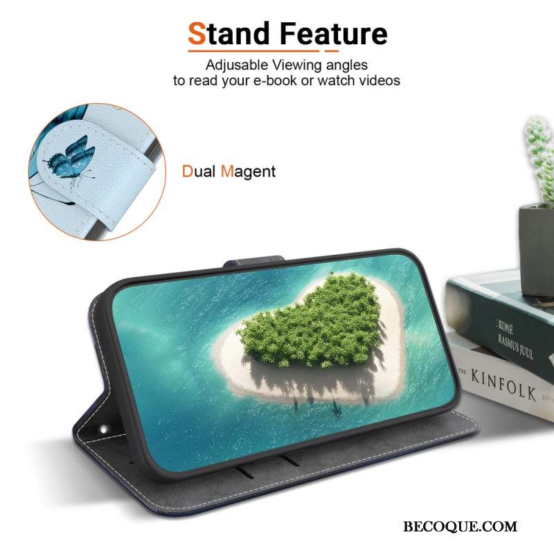 Housse Xiaomi 14T Papillon bleu et fleurs